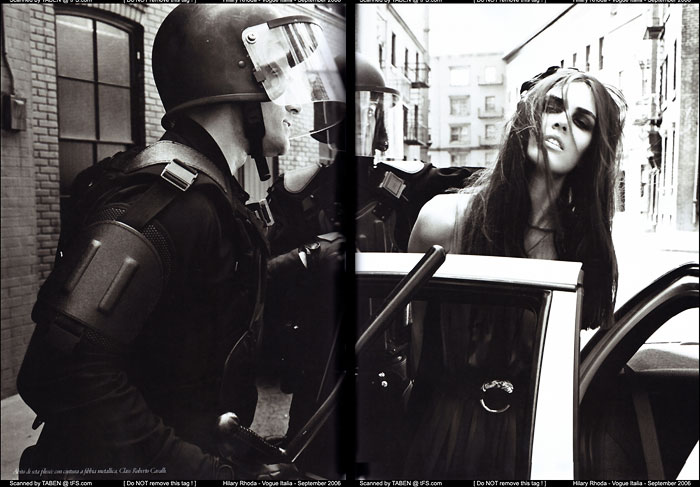 著名的时尚摄影师Steven Meisel想必大家应该是有所耳闻,他的摄影风格非常标新立异,就连时尚创意也要与别人拉开一段距离。刚好在911附近的日子里拍摄了一组state of emergency(紧急状态)时尚大片,让我是大开眼界啊!把恐怖事件用时尚的照片来重现非常引人注目,对于某些人来说,时尚确实是令人恐怖的。在网上搜索的时候有一大串他的相关信息,只是没有找到官方网站,这令我非常懊恼,有了解的朋友希望能够提供,多谢!