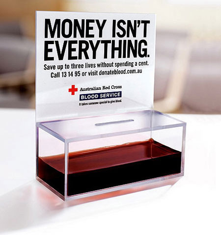 将钱投入这个募捐箱里面肯定不会让钱变成所需要的血,既然没有血可用,