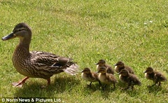 当时,星期天早上6点钟,Peter出去晨练注意到了黯然伤神的鸭妈妈,