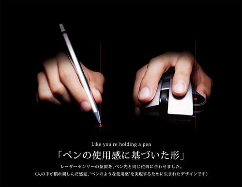 和普通鼠标相比起来这款鼠标的精度会高很多,它最大的亮点是将激光感应器设计到了与笔尖相应的位置,