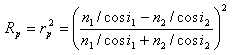 结果,随着i1的增加,Rp先变小再变大,i1 = arctg(n2/n1)时,Rp=0,达到最小值。