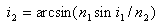 i1表示入射角,i2表示折射角,i2折射角可以通过以下折射定律得到;