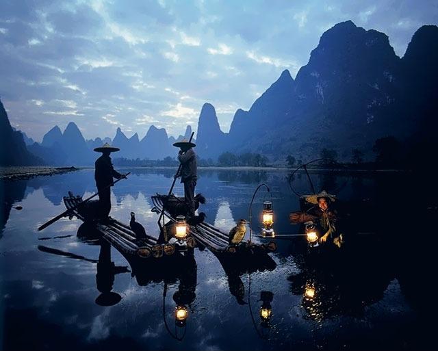 太阳光在月球上经过漫反射后到达地球,期间经过大气形成散射光。这个过程和原理已经在前文花大笔墨阐述。但是和白天不同的是,晚上的光线十分微弱,一些暖色光和散色光混合以后,显现出银白色甚至于宝石篮的颜色,图night.image1所展示的是一幅十分美丽的桂林夜景。值得注意的是,尽管晚上的光线十分昏暗,但是,在这昏暗中仍然充满了变化。这些变化与月亮的位置、月相、云层厚度都存在各自的关系。这样的原理前文也已经提到,这里是同样的道理。变化归变化,但有一点是始终不变的:在夜晚,除了被人工光源照亮的地方,地面的光线总间接来自于天空,所以地面总是比天空要暗。有时,我们不经意就把地面的颜色调得比天空亮,可能一时间反应不过来哪里出了问题,但总是会觉得画面很奇怪。