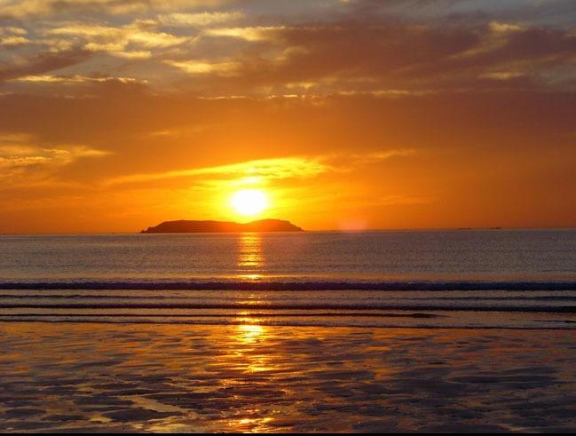 “日出江花红胜火”是白居易描写日出江面的一句词,这句词中的“江花”的解释一直都有争议。大部分人支持“江边的花”这一解释,但是我认为“江花”应该解释为“浪花”,且看下图(dawn.image1)。日出时,太阳“染红”了整个东方,太阳光斜射到海面,由于菲涅尔(Fresnel)效应造成强烈的反射,致使海面也呈现出热烈的红色。从某种意义上说,整个环境呈现出壮丽的红色比江边的小花泛红更能体现出日出的意境,所以我支持后一种观点。