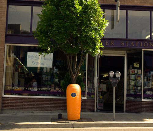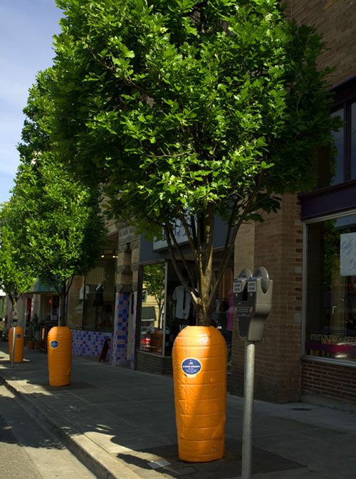 这是在美国波特兰的街头,广告营销的创意被赋予在了树上, 顿时变成了巨人的胡萝卜!挺有意思的设计创意!