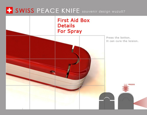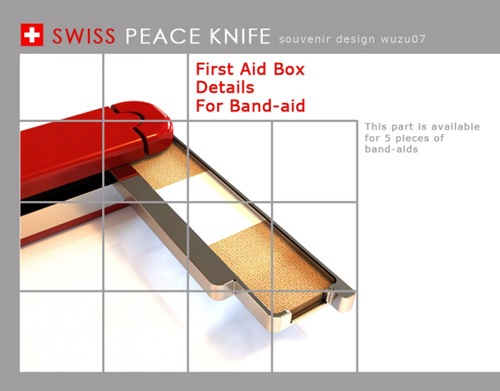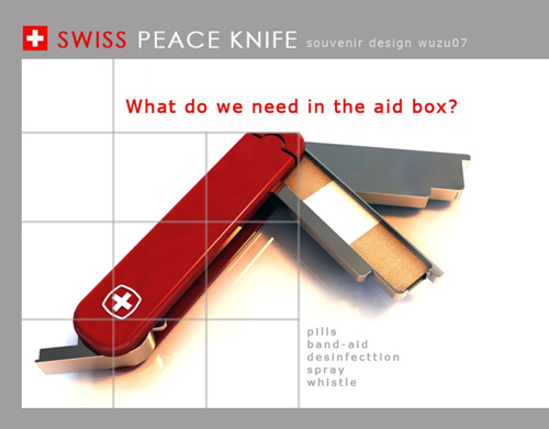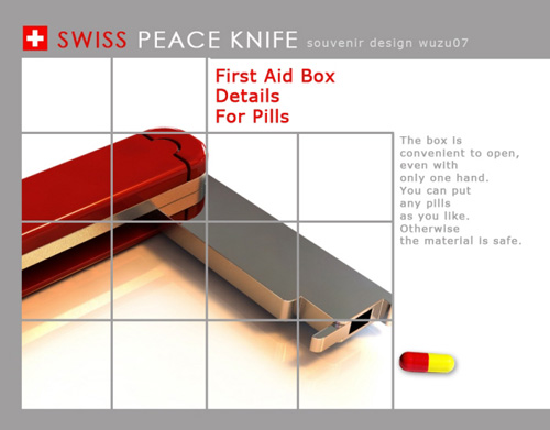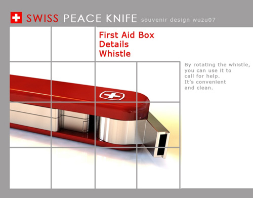 刀有没有值得一提,那要看在什么情况下有什么作用 值得一提的这款创意设计来自中国的一位设计师Jiang Qian。设计灵感围绕爱心, 每个人都需要被关爱和帮助,地球是一个大家庭。 这款便携折叠式的急救盒设有创可帖,药盒,喷雾和哨子, 这四样东西的创意组合相信绝对能帮到你。