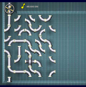 #在上面阀门和溢水管之间创建一个连续管道 #用鼠标点击小管件可以360度随意改变方向。 #当管线构成回路。点击水龙头放水!进入下一关。GO!