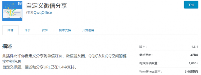 今天上午不忙,折腾了下,于是就通过插件自定义了文章分享,从功能实现上说也还是挺好的,满足我的需求,不过在实现上确实步骤还真不少,首先是安装,安装没有什么需要注意,主要是设置,如果想要在微信中直接分享,请按以下步骤操作: