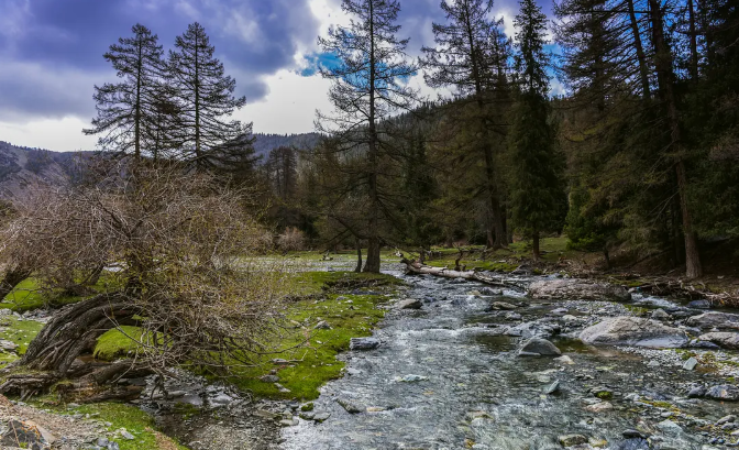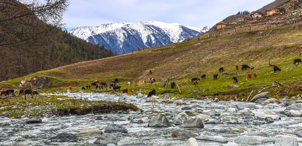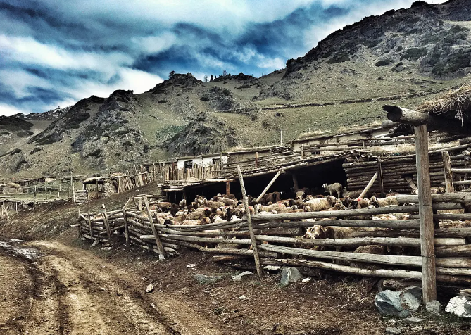 个人认为小溪边这块的景色真的很漂亮,背景是雪山,雪山上的雪水留下来汇成小溪,小溪旁边是草原,草原上还有成群的牛羊,而另一边又是一个质朴的小村庄!