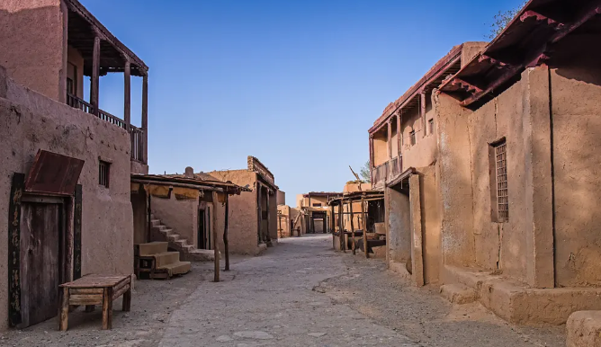 在剧中胡八一和胖子坐着驴车进入村子的地方实际取景地是在哈密的寒气沟!