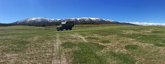 剧中骑着驴车唱着歌经过的这片草原其实是新疆通往巴里坤大草原的途中一段,背靠雪山,蓝天草原一望无际!