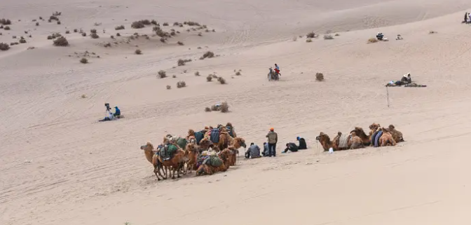 剧中大伙去找安力满的这场戏,喂骆驼的这个场地是在敦煌影视古城里拍的,那里是比较热门的旅游地之一,所以拍摄当天也有不少路透!