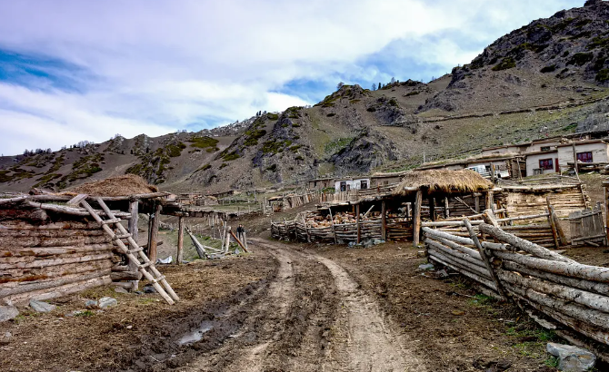 要进入这个在半山腰上的小村庄只能通过这条泥泞的小路!