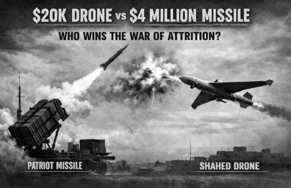 然后是防空拦截弹:爱国者(Patriot)单发400万美元,萨德(THAAD)拦截弹1200万美元。伊朗用廉价无人机+导弹饱和攻击,美军要拦截就得“一枚对一枚”。头5天就烧掉爱国者拦截弹价值24亿美元,萨德全球库存已用掉25%。去年以色列12天冲突就用掉萨德1/4库存,这次规模更大。