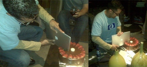 惠普全球游戏业务部的首席技术官Rahul Sood 近日在自己的Blog 上刊登了一张照片。照片中Sood 身穿HP 体恤,手里正拿着一台苹果超薄笔记本Mac Book Air 切蛋糕。这张对于普通人来说再平常不过的照片,现身网络后立马引起了网友们热血沸腾的讨论(主要关于HP和Apple 想也想得到吧)。